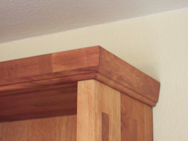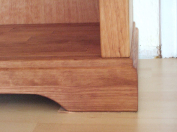 Offenes Bücherregal aus massiver Keilgezinkter Erle, geölt. Sockel und Kranz in klassischer Bauweise.